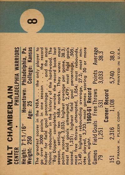 8 Wilt Chamberlain, Philadelphia Warriors RC