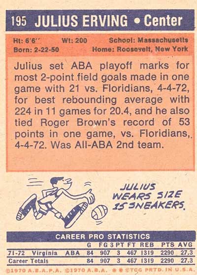 263 Artis Gilmore / Julius Erving / Mel Daniels, Kentucky Colonels / Virginia Squires / Indiana Pacers – ABA Rebounds Leaders