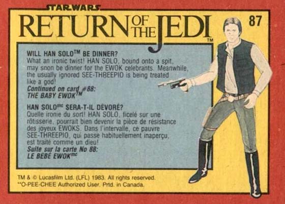 1983 O-Pee-Chee Star Wars: Return of the Jedi 87 Will Han Solo Be Dinner?