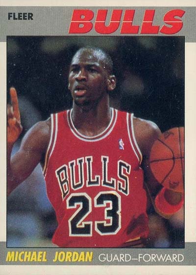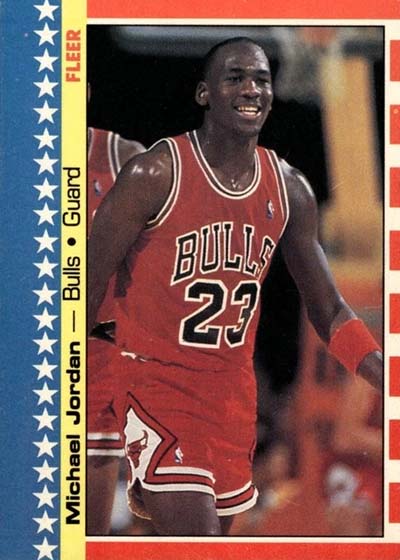 The most valuable card in the product belongs to Michael Jordan. Going by traditional definitions, this is his second-year card and it towers over all of the rookies in the set. Other key second-year cards include Charles Barkley, Patrick Ewing, Hakeem (Akeem) Olajuwon and Karl Malone.