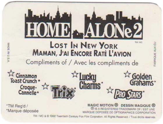 1992 General Mills Home Alone 2 Magic Motion trading cards were the prize in select cereal boxes across Canada.