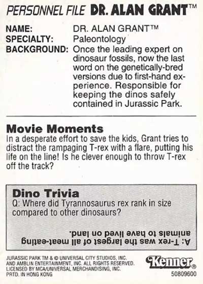 1993 Kenner Jurassic Park trading cards might bring more nostalgia to a lot of people than the more traditional Topps set. That’s because the Kenner cards were a bonus that accompanied the toy line. Packaged with action figures, vehicles and playsets, they channel the heyday of Toys ‘R’ Us and the magic young fans experienced beyond the big screen.