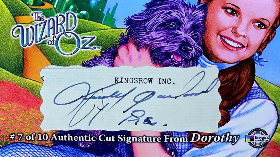 Autographs come in a few forms, some more scarce than the others. The headliners are three different Cut Signatures, two from Judy Garland that are numbered to 10 and a Jack Haley that has 130 copies. The Garland cards are oversized.