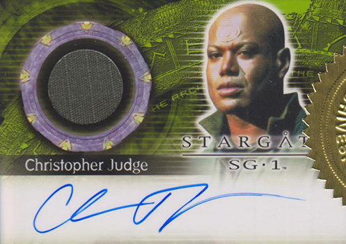 The final 2012 Rittenhouse Stargate SG-1 Autographs Expansion card is a signed costume card of Christopher Judge (Teal’c). This card had a print run of 500 copies.