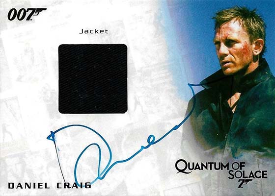 Numbered to 155, a Daniel Craig autographed memorabilia card is on the 2013 Rittenhouse James Bond Autographs and Relics checklist, but it’s not in standard packs. Rather, it’s the product’s six-case incentive.