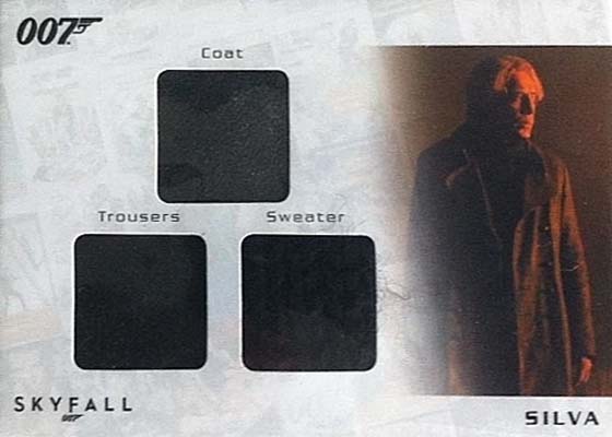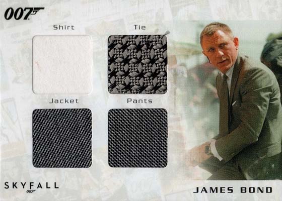 The one-per-box Relics come with costume swatches, all from Skyfall. Consisting of one to four pieces, all are numbered to 200.
