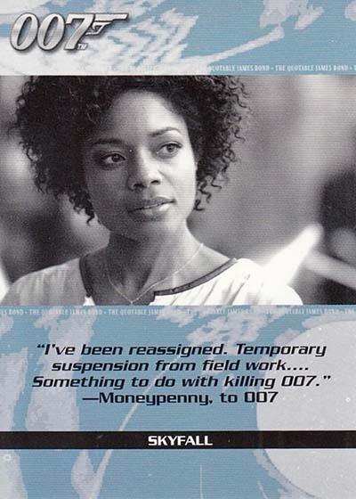 Finally, there’s Quotable Skyfall (21 cards, 1:12 packs), which highlight some of the movie’s top lines.