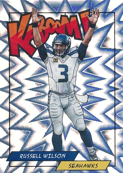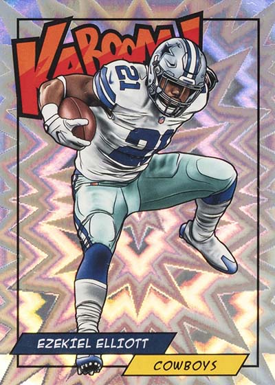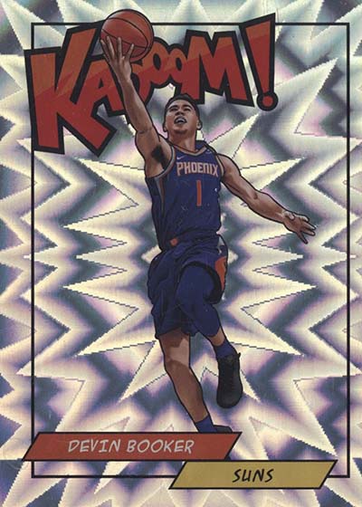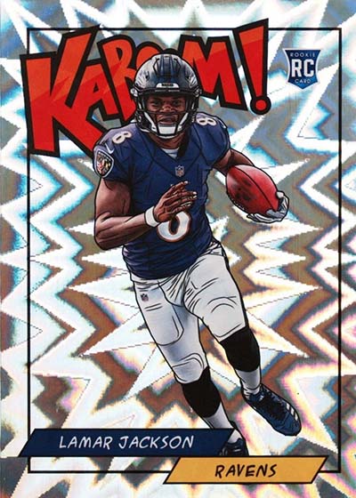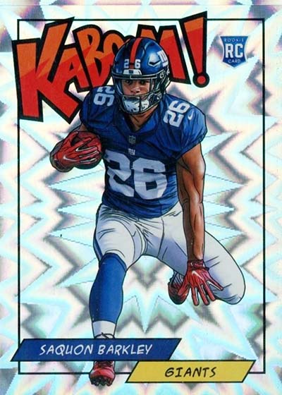 2018 Panini Kaboom keeps with the flashy, comic-inspired designs used in every iteration of the popular cards. However, the approach is totally unique. Rather than inserts included in a variety of releases, each dedicated to a single sport, this time around it’s a standalone product. They’re not inserts. The 2018 Panini Kaboom checklist covers a handful of sports giving it plenty of room for big-name stars and rookies.