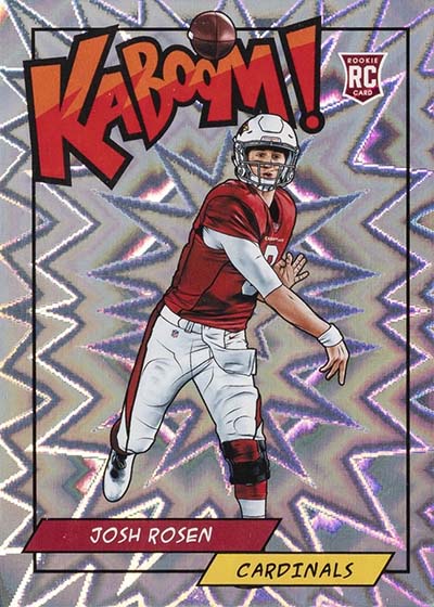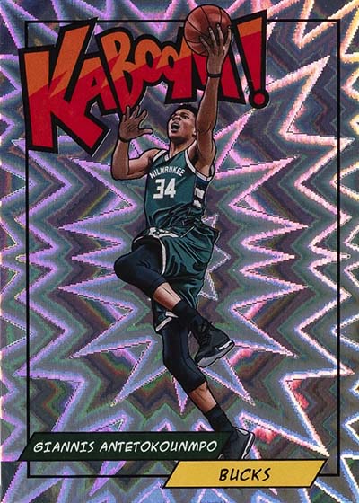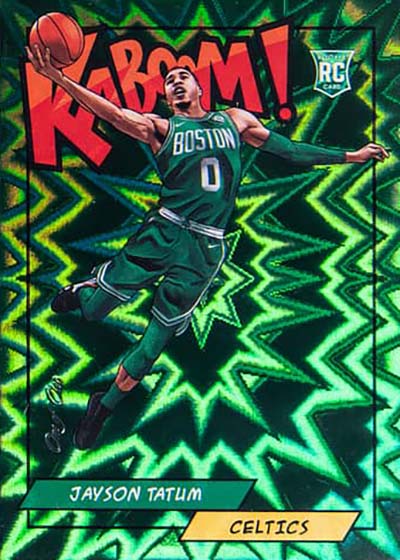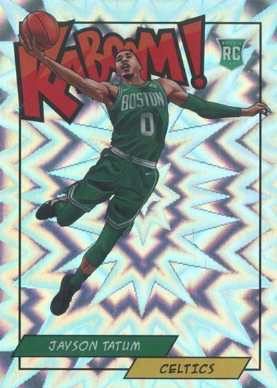 The full 2018 Panini Kaboom checklist has 50 cards with athletes from basketball, football, soccer and baseball. This set marks the first time that football and baseball players appeared on Kaboom cards.