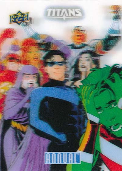 TITANS Lenticular cards combine to land approximately one per hobby box. These have four levels of rarity, making the set build more challenging.