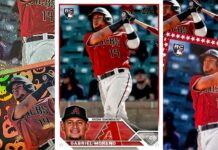 Hidden Gems kicked off at the start of the baseball card season with 2023 Topps Series 1. The initial installment included five cards. Despite being listed among the set’s odds (1:38,127 hobby packs), the cards themselves weren’t listed on the checklist. It took several days for the first one to show up on the secondary market — long enough to have collectors wondering if the cards actually existed.