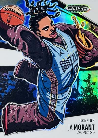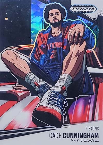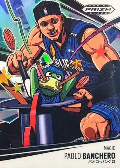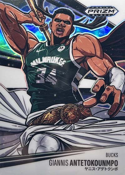 2024-25 Panini Prizm Black Manga inserts are found in both hobby configurations: