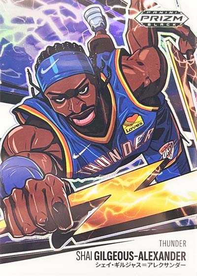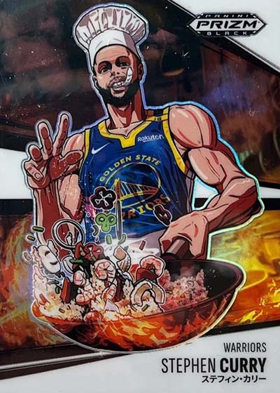 2024-25 Panini Prizm Black Basketball Manga inserts are a follow-up of sorts to the SSP cards found in the season’s main Prizm set. The art style is similar but this time around things are a lot more lively. Rather than simply presenting players in the Japanese comic style, there’s more over-the-top action and personality. It’s essentially like the 2024 Panini Prizm Football Manga cards and they’re a lot more memorable for it.