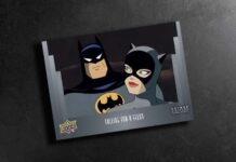 Collectors won’t find any actual autographs in 2024 Kakawow Cosmos Warner Bros. 100th Anniversary. However, some of the rarest cards on the checklist give a nod to them. Script Art cards have pre-printed signatures as imagined not by the actors who played them but rather the character themselves. Single-character cards have 50 copies each. There are also Dual (#’ed/10), Triple (#’ed/5) and Quad (#’ed/3) plus one-of-one cards.