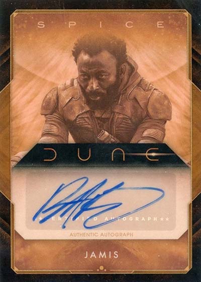 Finally, there are Dune Authentic Relic Autographs that add memorabilia to the mix.