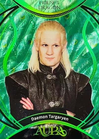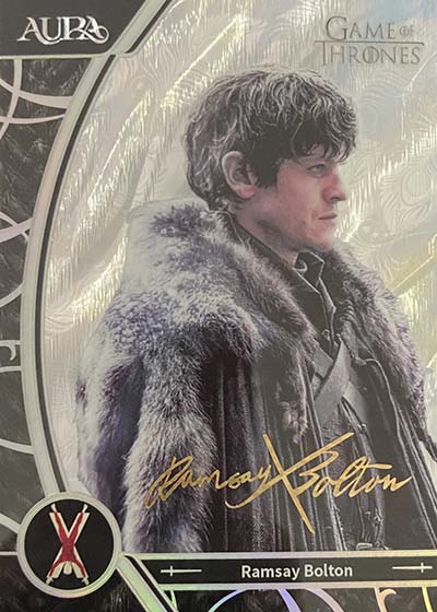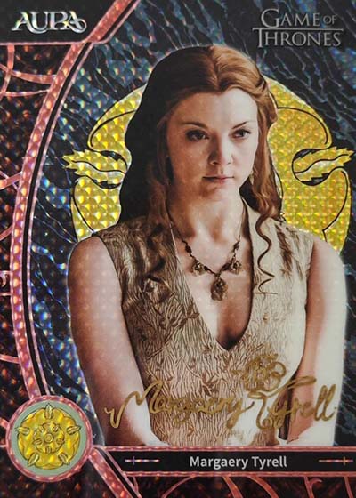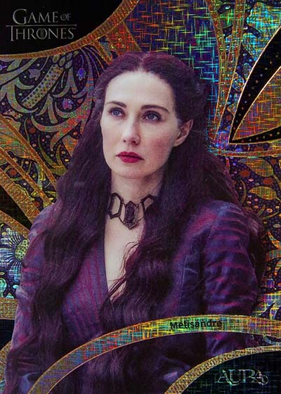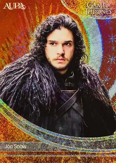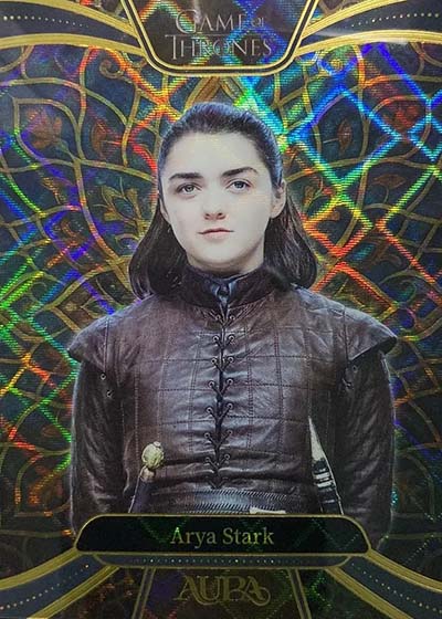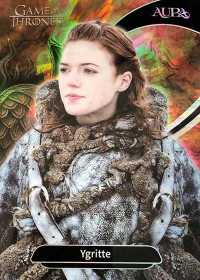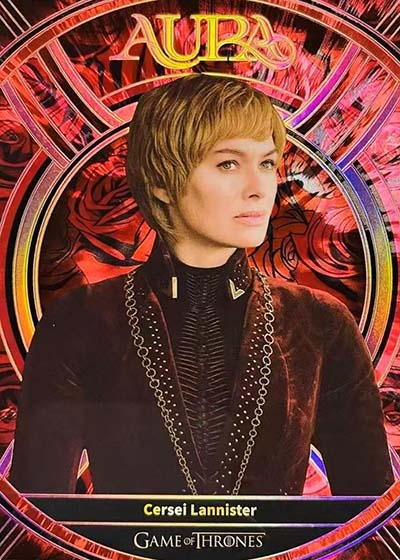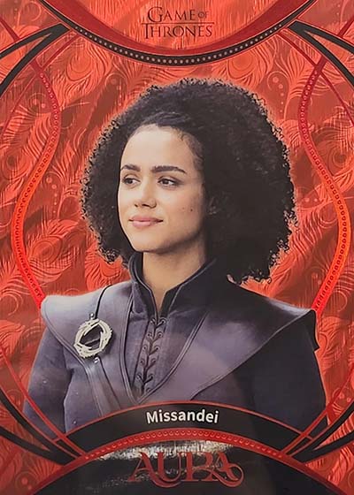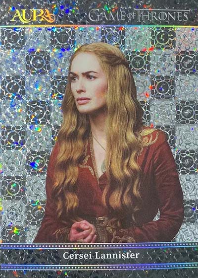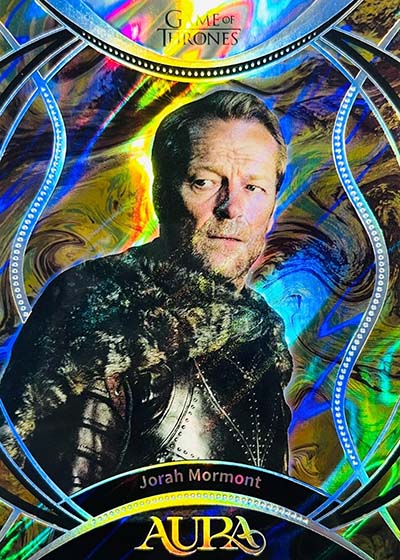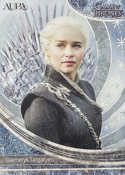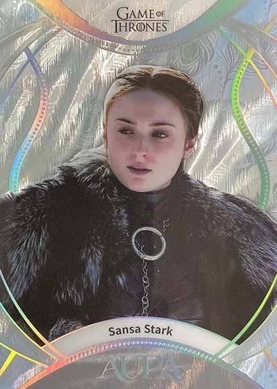 For those who have collected the various Rittenhouse Game of Thrones sets in the previous decade-plus, they’ll notice a big difference in the design. Aura is much more intricate and uses a metallic shine. The result is much more modern.