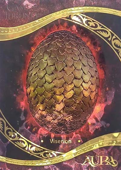 Not surprisingly, there are some ultra scarce cards as well in the form of Dragon (#’ed/50), Dragon Egg (#’ed/25) and Iron Throne (#’ed/3).