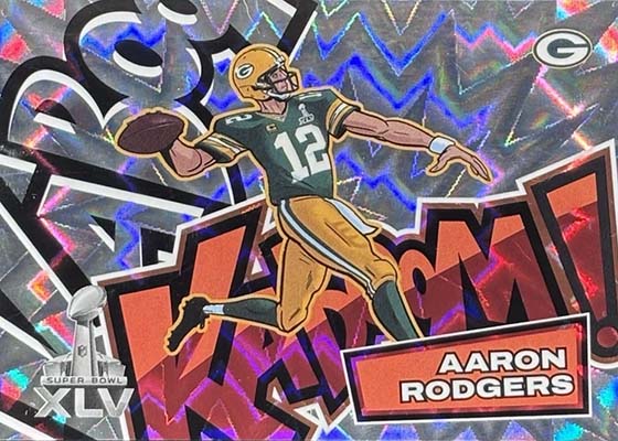 Odds have not been released for the cards, although they’re often referred to as case hits. Standard Horizontal versions are the most widely available. Many Vertical and Super Bowl Kabooms are extremely tough to find, something that isn’t helped much by the massive checklist.