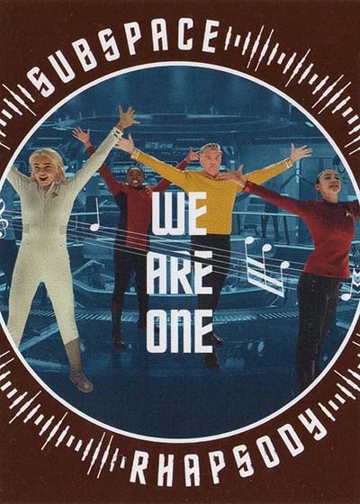 Storyboard Artwork, Costume Design and Travel Posters continue from Season 1. Among the other inserts are Subspace Rhapsody, which highlight songs from the musical episode, Animated Characters and Cast Gallery.