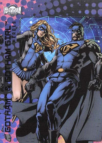 Parallels come in several levels. Some are standard colors while others use Gotham-inspired themes. All 200 cards have: