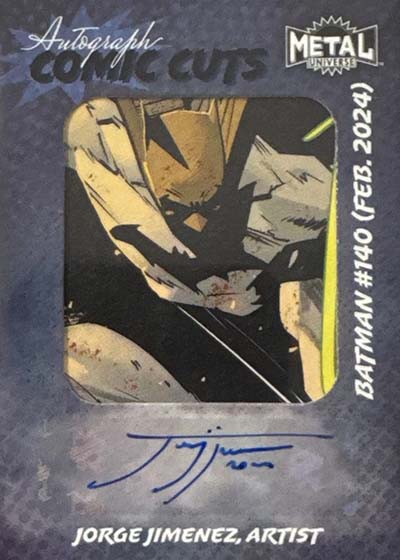Actual comics were cut up for 50 different Comic Cuts. Issues for these go back as far as 1937. To create them, panels are embedded inside the cards similar to game jersey cards on the sports side of the hobby. This concept is also used for Autographed Comic Cuts.
