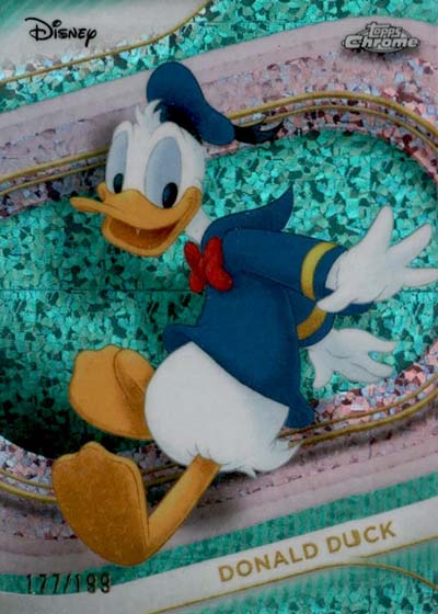 For those familiar with anything Topps Chrome, it shouldn’t be surprising that all 200 base cards have a large number of parallels to chase as well. A total of 30 different colors and patterns make up the 2025 Topps Chrome Disney rainbow: