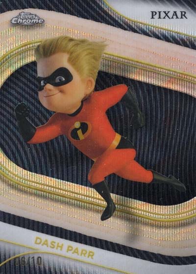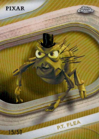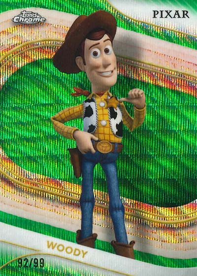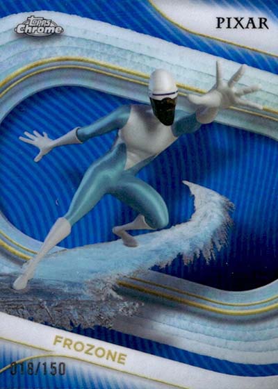 The base set is a sizeable 200 cards, all of which is focused on characters. Disney Animation classics as well as Pixar films are represented. However, for the first time in Topps Chrome, there’s a handful of live action characters as well. These include Jack Sparrow, Belle and Stitch. Kermit the Frog, Miss Piggy and Animal from The Muppets are also on the checklist.