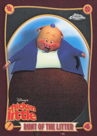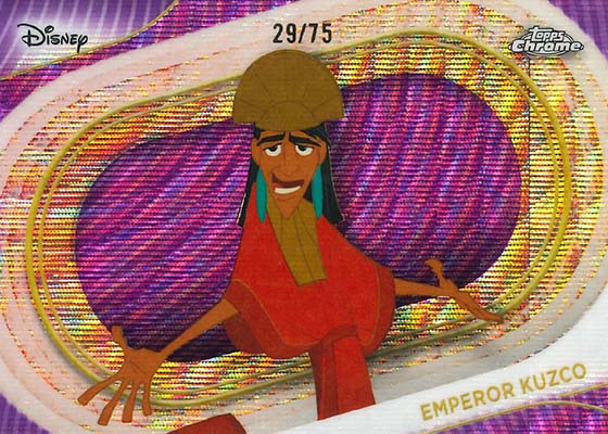 Milestones are a theme in a handful of more common inserts like The Emperor’s New Groove 25th Anniversary, Pocahontas 30th Anniversary, Pluto 95th Anniversary and Lady and the Tramp 70th Anniversary. This last set includes the first Spaghetti-fractors for its parallels, a nod to the iconic scene. Chicken Little 20th Anniversary inserts are exclusive to blaster-style value boxes.