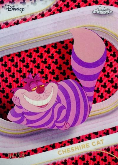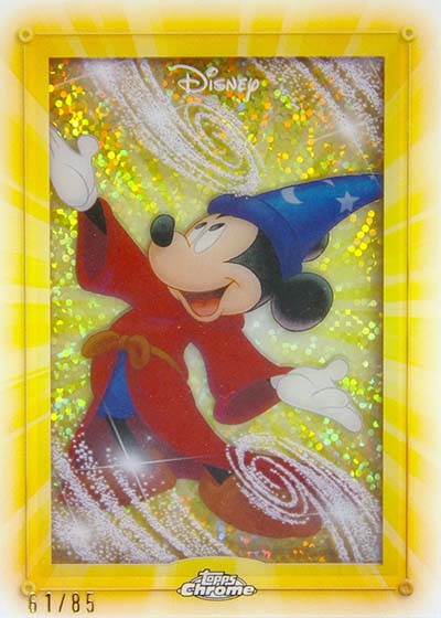 On top of these, 20 cards have Image Variations. Landing at a combined rated of one per hobby case, base versions are done as Speckle Refractors numbered to 265. Additional parallels for these include Mickey Mouse Red and Black Refractors (#’ed/28), Orange Refractors (#’ed/25), Black Refractors (#’ed/10), Red Refractors (#’ed/5) and Superfractors (1/1).
