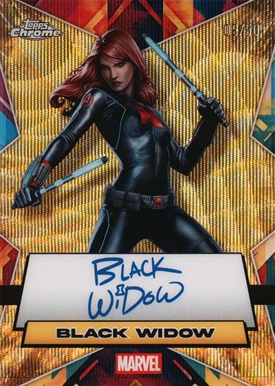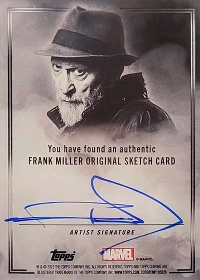 The 2025 Topps Chrome Marvel checklist does have some traditional hits available including autographs from comic creators and artists. Sketch cards are also possible, including some done by comics legend Frank Miller.