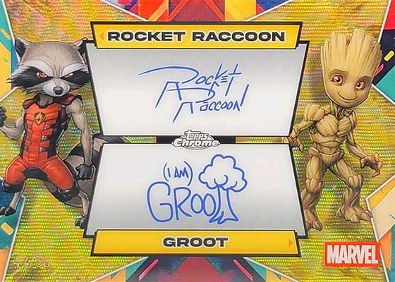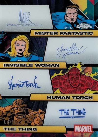 The signature idea carries over into some tough facsimile autographs featuring faux pre-printed autographs from one, two, three and four characters. None of these have more than 50 copies each.