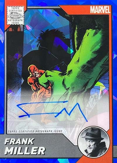 Signatures—both real and imagined—make the jump over on the 2025 Topps Chrome Sapphire Marvel checklist as well. Comic Book Artist and Writer Autographs offer ink from ten Marvel creators. Frank Miller is the headliner.
