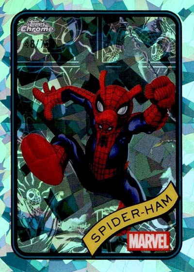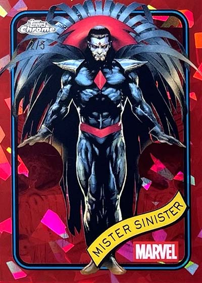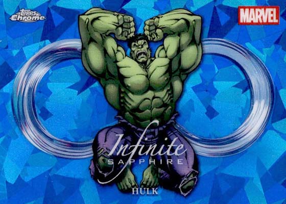 2025 Topps Chrome Sapphire Marvel has three additional insert sets that are exclusives: Sapphire Selections, Infinite Sapphire and The Merry Marvel Marching Society 60th Anniversary. All three are tough pulls.