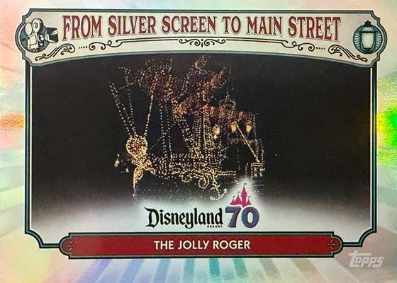 Some of the toughest inserts on the 2025 Topps Disneyland 70th Anniversary checklist fall under the Topps Chrome banner. Some of these are attraction specific like Star Tours (#’ed/77), Pirates of the Caribbean (#’ed/67), the Enchanted Tiki Room (#’ed/63), the Jungle Cruise in The Eighth Wonder (#’ed/55), The Haunted Mansion and It’s a Small World.