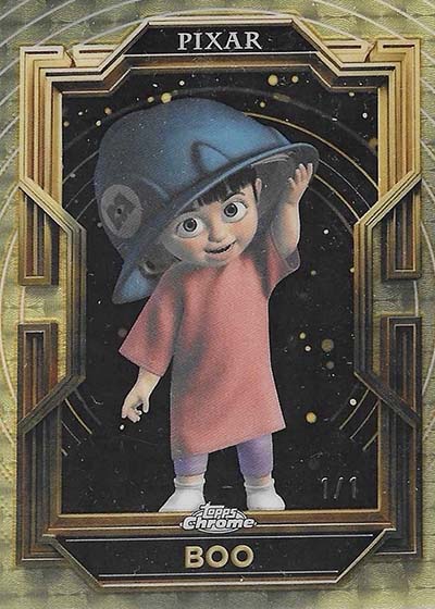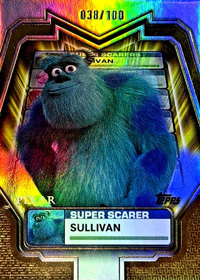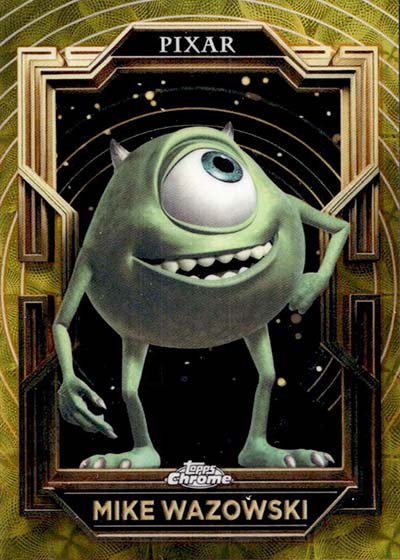Among the encased inserts on the 2025 Topps Pixar Gold checklist are Behind the Voice, which pair up pictures of characters with the actors who play them. Others include Golden Icons, Pixar Perfection, Pixar’s Global Tour, Wall Art and Super Scarer—a single card dedicated to Mike Wazowski from Monsters, Inc.