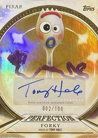 Other signatures are possible in the encased card packs. Pixar Perfection Autographs (#’ed/100) and Behind the Voice Autographs (#’ed/20) carry over from standard insert sets.