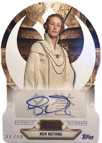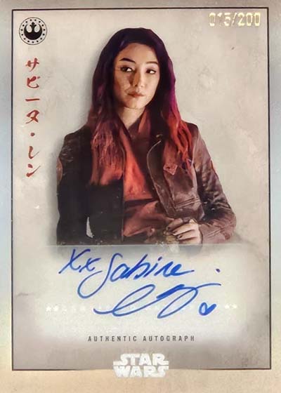 Chrome Autographs are where a lot of the signatures are found on the 2025 Topps Star Wars Meiyo checklist. More than 20 signers are available with the vast majority being notable names. Base versions are numbered to 200 copies with a handful of parallels also available in significantly lower numbers.