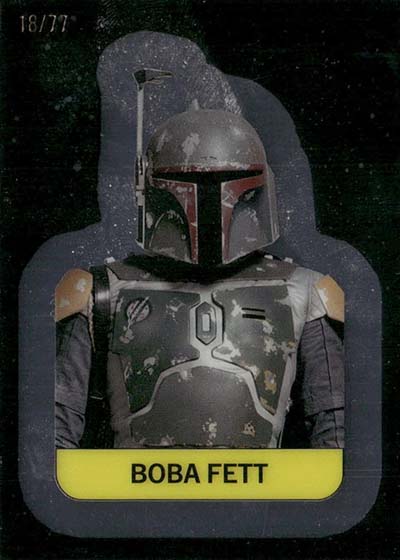 Chrome Stickers are one of the tough insert sets on the 2025 Topps Star Wars Meiyo checklist. Based on the design of the original character stickers from the first 1977 Topps Star Wars sets, these have updated characters as well as chromium stock. Base versions are numbered, appropriately enough, to 77.