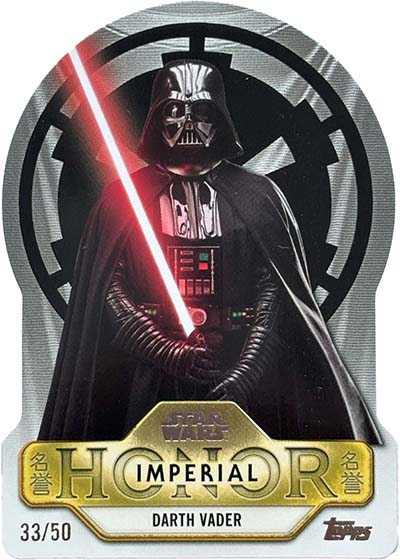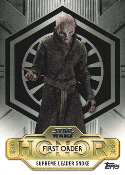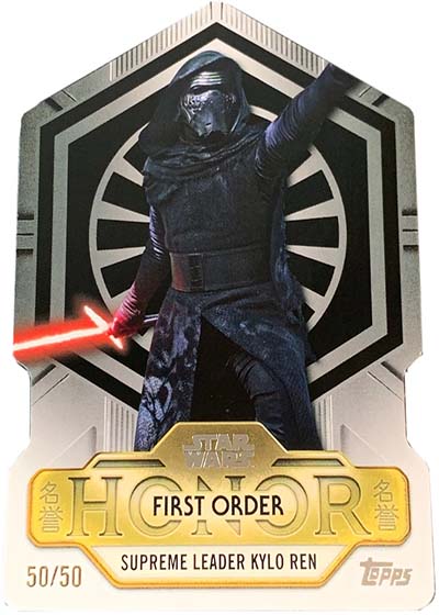 Each of the four factions from the base set have their own smaller Honor insert sets. In addition to a traditional mix of parallels, these have die-cuts numbered to 50. Select cards also get the autograph treatment.