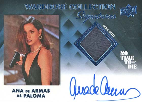 More ink can be found in Wardrobe Collection Signatures, Ensemble Autographs, The New Agents Autographs, World of Bond Autographs, and Not Just a Number Autographs. These are all signed versions of other insert sets that are also on the checklist.