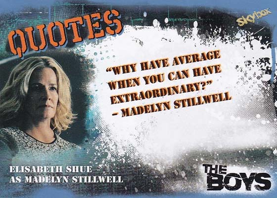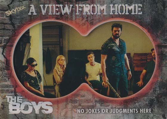 Other inserts on the 2025 Upper Deck The Boys Seasons 1 and 2 checklist include Behind The Boys (1:5 packs), In Memory Of… (1:5 packs), Quotes (1:5 packs), Action Figures (1:11 packs), Supes (1:30 packs), and A View from Home (1:48 packs).