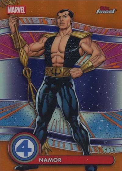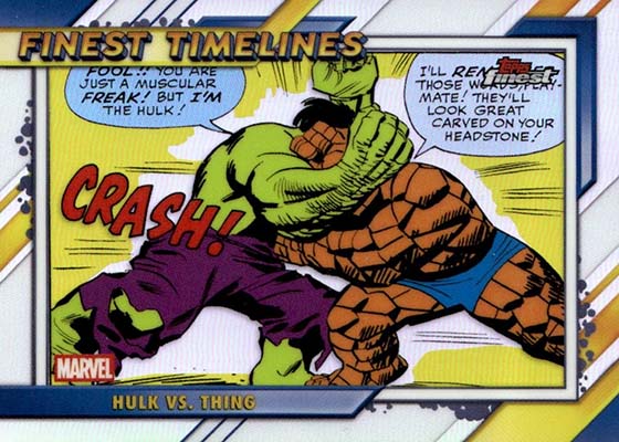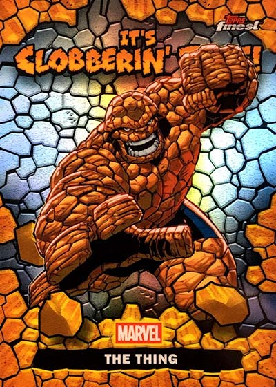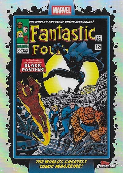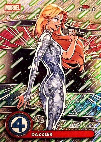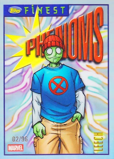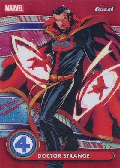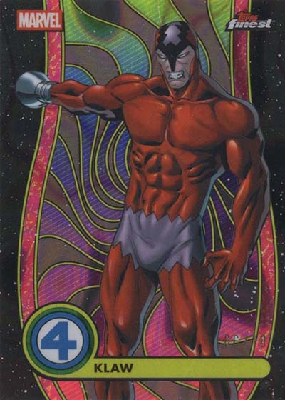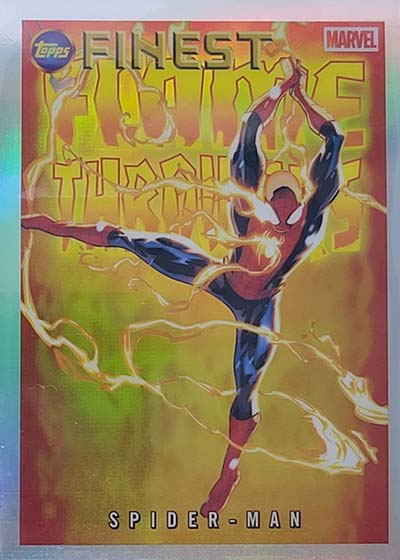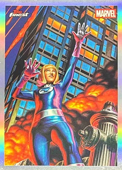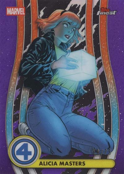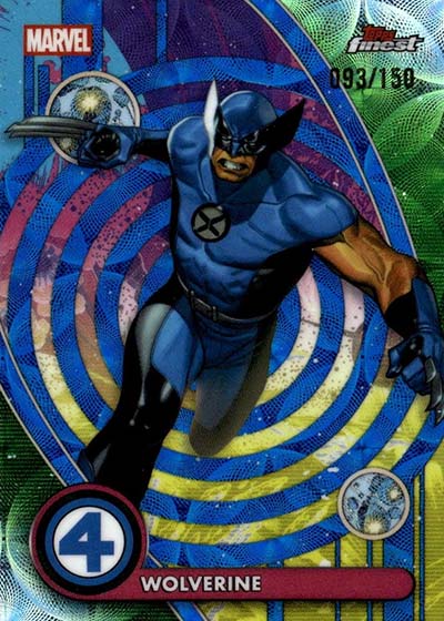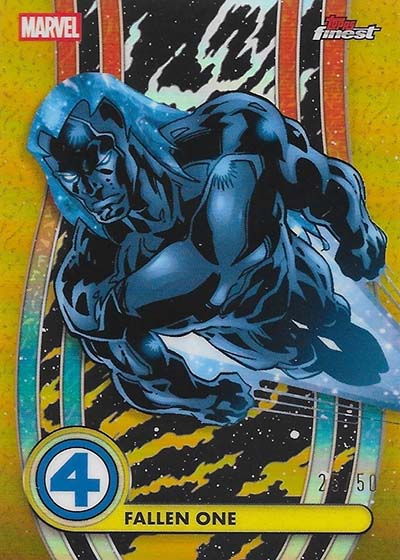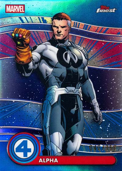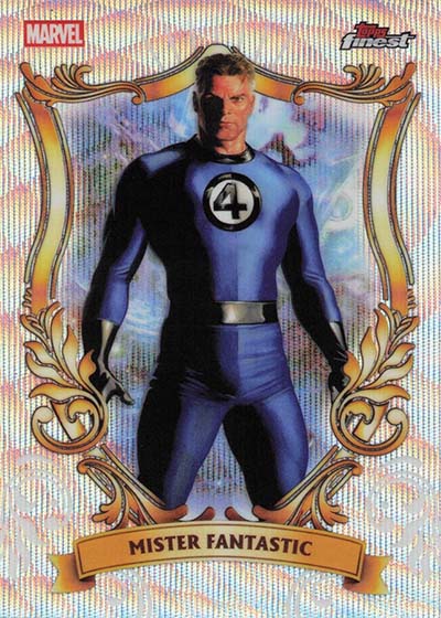 The base set looks at the various characters that have come and go over the decades in the comic books. In addition to Marvel’s first family, there are plenty of allies, other heroes from across the Marvel universe and, of course, villains. Like other recent Finest sets—and some from the 1990s—base cards come in three levels: Common (#1-50), Uncommon (#51-85) and Rare (#86-100).