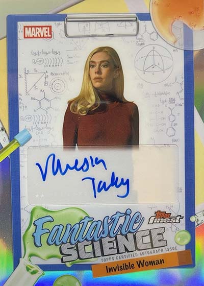 The top autographs on the 2026 Topps Finest Fantastic Four checklist come from the film’s actors. All four of the leads (Pedro Pascal, Vanessa Kirby, Joseph Quinn and Ebon Moss-Bachrach) are available. Other highlights include Paul Walter Hauser and Natasha Lyonne. This is the first set to include autographs from Lyonne, who also also starred in American Pie, Orange Is the New Black and Poker Face.
