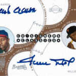 2003 Topps Stadium Club is the first set to have a dual autograph featuring Hank Aaron and Willie Mays. See the card now.