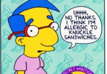 2001 Inkworks Simpsons Mania trading cards offer a self-referential look at both the show and the hobby. The checklist includes both autographs and sketch cards.