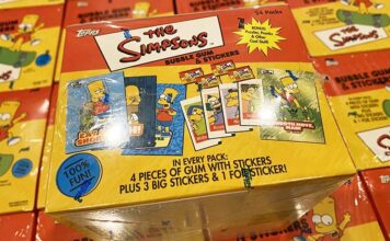 1990 Topps Simpsons checklist, trading cards details, links to buy and check values, pack and box info and other resources.