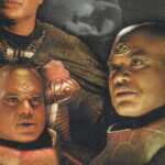 2003 Rittenhouse Farscape Season 4 trading cards wrap up the episodic recap portion of the line. Autographs fall two per box alongside one costume card.