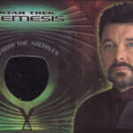 2003 Rittenhouse Star Trek: Nemesis Expansion is a small factory set that has 18 base cards and a costume card. Base cards take advantage of the later release date, adding special effects shots.