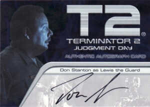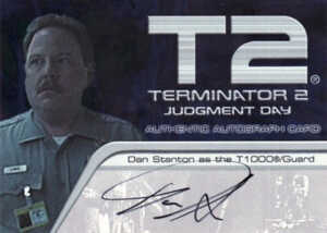 The Terminator 2 FilmCardz Autographs are inserted one per box with seven included in the main part of the set. There’s also a Dan and Don Stanton dual autograph that was distributed as a case topper.