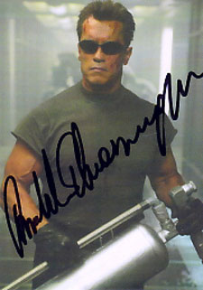 Leading that list is Ah-nuld himself, Arnold Schwarzenegger. He has a trio of signed cards to choose from including 2003 Comic Images Terminator 3: Rise of the Machines. The cards, which is only in hobby packs, is limited to 300 copies.